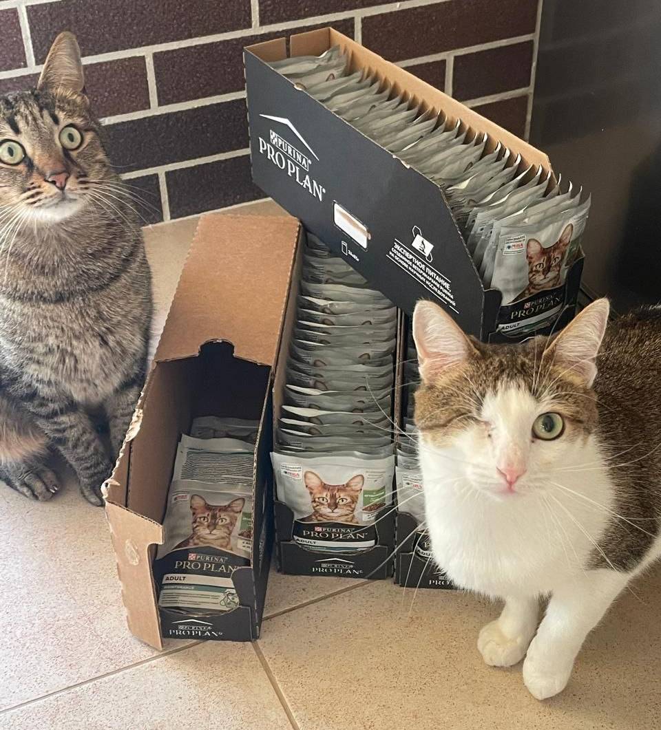 В ноябре благотворительный фонд «Котодетки» преподнёс нашим подопечным невероятный подарок — партию влажного корма Purina весом 500 кг!