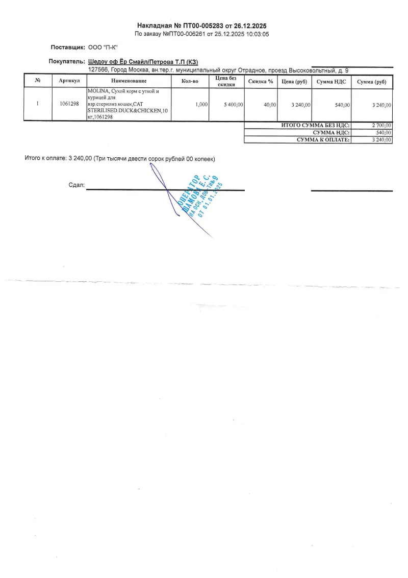 5.29.12.2025ООО «П-К»Сухой корм Molina3240,00